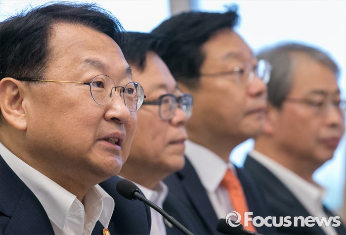 (서울=포커스뉴스) 24일 오전 서울 여의도 국회 귀빈식당에서 열린 2016년 하반기 경제정책방향 당정간담회에 참석한 유일호 경제부총리 겸 기획재정부 장관이 인사말을 하고 있다.