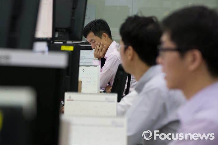 (서울=포커스뉴스) 영국의 유럽연합(EU) 탈퇴를 의미하는 '브렉시트' 국민 투표 개표가 진행되는 24일 오전 서울 중구 KEB 하나은행 명동 본점 딜링룸에서 딜러들이 업무를 보고 있다. 이날 코스피지수는 브리메인 기대에 2000p를 돌파했으나 다시 하락해 1900p대를 유지하고 있다.
