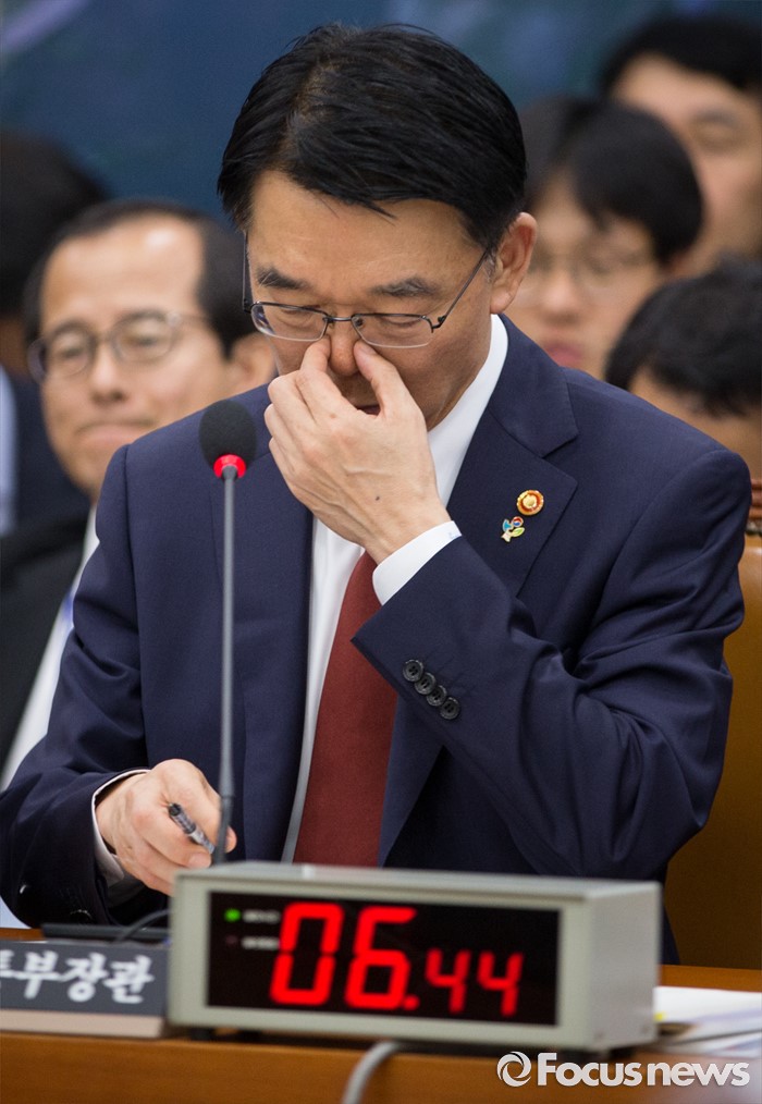 (서울=포커스뉴스) 강호인 국토교통부 장관이 24일 오전 서울 여의도 국회에서 열린 국토교통위원회 전체회의에 출석해 의원들의 질문을 받고 있다.