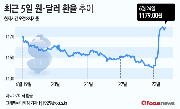 [그래픽] 최근 5일 원·달러 환율 추이