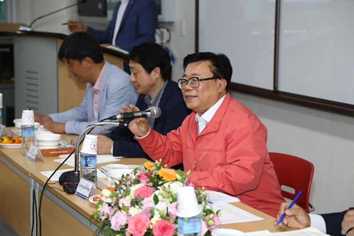 (진주=포커스뉴스) 이동필 농림축산식품부 장관이 24일 경남 진주시 경남도농업기술원 첨단농업에서 열린 스마트 팜 확산 상반기 점검회의에서 스마트 팜 추진성과를 점검하고 현장의 의견을 청취하고 있다. <사진제공=농림축산식품부>