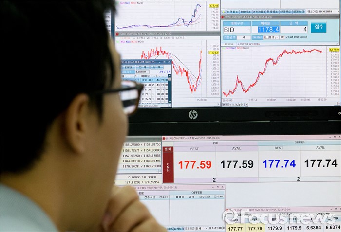 (서울=포커스뉴스) 코스피와 코스닥이 브렉시트 확정에 나란히 폭락한 24일 오후 서울 중구 KEB 하나은행 딜링룸에서 딜러들이 분주하게 업무를 보고 있다. 이날 코스피는 전거래일보다 61.47포인트(3.09%) 내린 1925.24에 장을 마감하며 4년여 만에 최대 낙폭 수준을 기록했다.