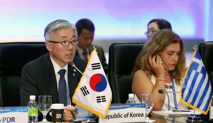 (광주=포커스뉴스) 김종덕 문화체육관광부 장관이 24일 광주시 동구 국립아시아문화전당 국제회의장에서 열린 제7차 ASEM 문화장관회의 본회의에서 의장성명서를 발표하고 있다. <사진제공=문화체육관광부>
