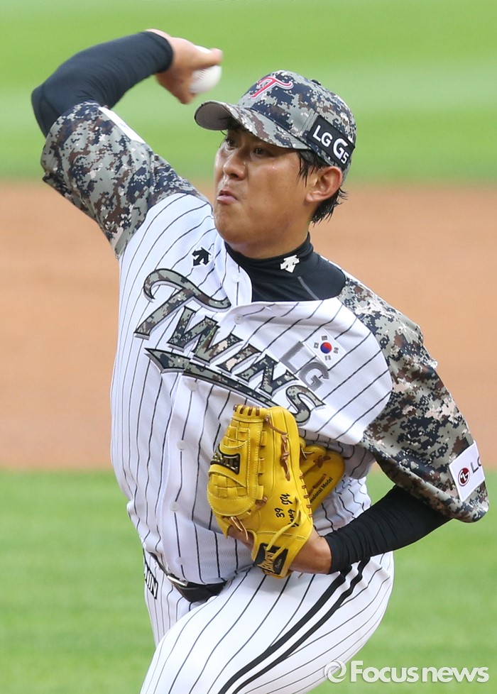 (서울=포커스뉴스) 24일 서울 잠실구장에서 열린 2016 프로야구 넥센-LG 경기에서 1회초 LG 선발투수 장진용이 투구하고 있다.