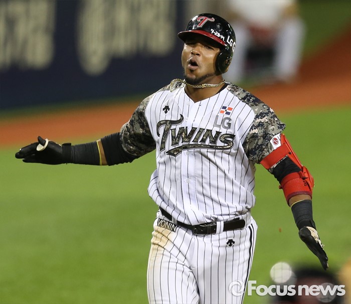 | △ 역점 홈런치고 환호하는 LG 히메네스 |