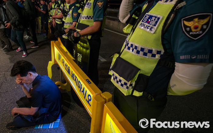 (서울=포커스뉴스) 24일 오후 서울 서초구 현대자동차 본사 앞에서 열린 '유성기업 故 한광호씨 100일ㆍ현대차 진격의 날' 집회에 참석한 한 노동자가 생각에 잠겨 있다.