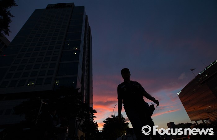 (서울=포커스뉴스) 24일 오후 서울 서초구 현대자동차 본사 앞에서 열린 '유성기업 故 한광호씨 100일ㆍ현대차 진격의 날' 집회에 참석한 한 노동자가 발걸음을 옮기고 있다.