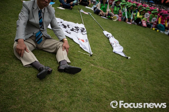 (서울=포커스뉴스) 25일 오후 서울 중구 시청광장에서 열린 '민주노총 전국노동자대회' 참석자들이 최저임금 1만원, 비정규직 철폐를 촉구하고 있다.