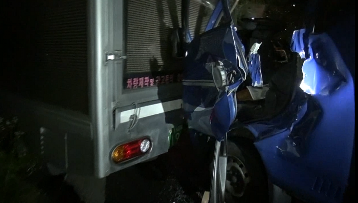 (서울=포커스뉴스) 26일 0시32분쯤 서울 구로구 오류동 삼거리에서 신호를 기다리던 1톤 트럭을 뒤따르던 다른 1톤 트럭이 들이받는 사고가 발생했다.