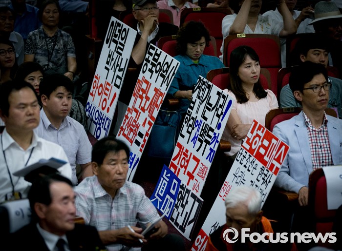 (서울=포커스뉴스) 26일 오후 서울 여의도 국회 의원회관에서 열린 미래로 가는 바른 역사 협의회 발대식 및 식민사학 규탄대회에 참석자들이 만든 피켓들이 보이고 있다.