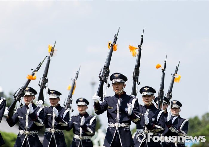 (서울=포커스뉴스) 26일 오후 서울 동작구 국립서울현충원 겨레얼마당에서 국방부 군악대와 의장대가 호국보훈의 달을 맞아 전통의장 및 퍼레이드 시범을 선보이고 있다.