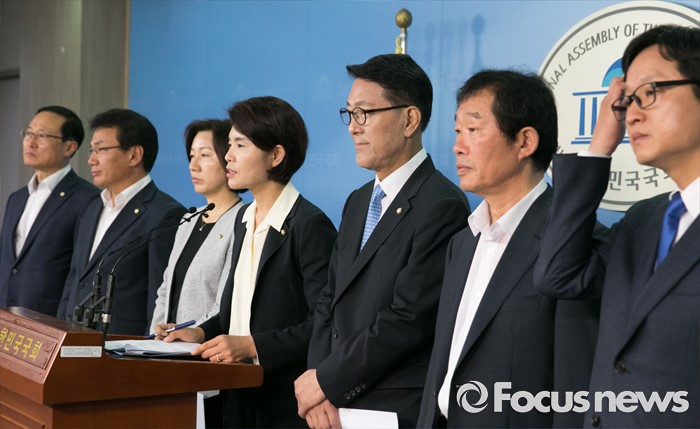 (서울=포커스뉴스) 홍영표 국회 환경노동위원장 등 더불어민주당 소속 환노위원들이 27일 오전 서울 여의도 국회 정론관에서 2017년 적용될 최저임금 결정시한을 하루 앞두고 인상 촉구 기자회견을 하고 있다.