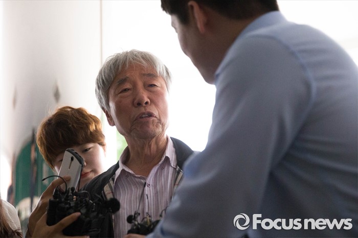 (서울=포커스뉴스) 27일 오전 이우환(80) 화백이 위작 판정이 내려진 작품 13점의 피해자 겸 참고인 신분으로 서울 중랑구 서울지방경찰청 지능범죄수사대에 출석하고 있다.