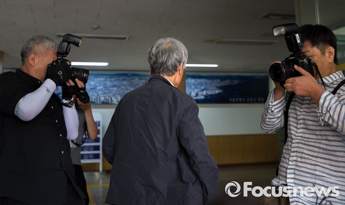 (서울=포커스뉴스) 27일 오전 이우환(80) 화백이 위작 판정이 내려진 작품 13점의 피해자 겸 참고인 신분으로 서울 중랑구 서울지방경찰청 지능범죄수사대에 출석하고 있다.