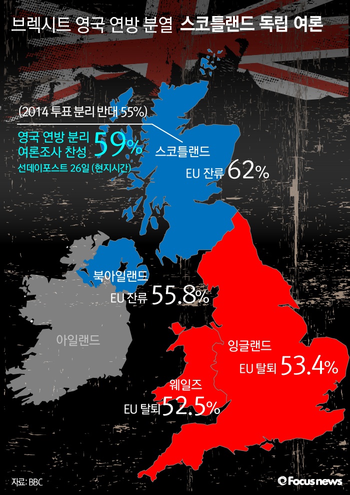 | △ [그래픽] 브렉시트 영국 연방 분열, 스코틀랜드 독립 여론 |