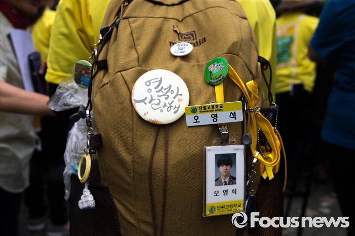 (서울=포커스뉴스) 27일 오후 서울 종로구 청운효자동주민센터 앞에서 416 가족협의회와 416 연대 관계자들이 세월호 특조위 강제해산과 박근혜 정부를 규탄하는 기자회견을 하고 있다.