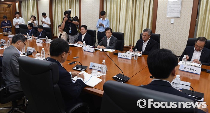 (서울=포커스뉴스) 해외 순방에서 조기 귀국한 이주열 한국은행 총재가 27일 오후 서울 중구 한국은행에서 열린 긴급 간부회의에 참석해 모두발언 하고 있다. 이 총재는 이날 브렉시트(영국의 유럽연합 탈퇴)에 따른 국내외 금융시장 동향 점검 및 대응 방안 논의를 위해 회의를 주재했다.