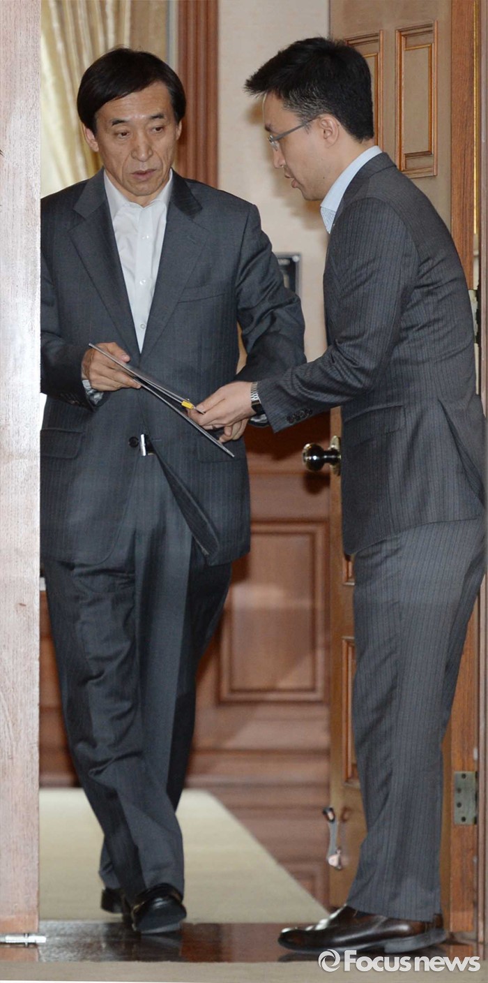 △ 긴급 간부회의 참석하는 이주열