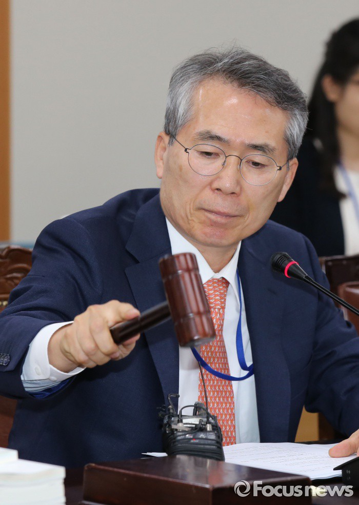 (세종=포커스뉴스) 박준성 최저임금위원회 위원장이 27일 오후 세종시 정부세종청사 고용노동부 전원회의실에서 열린 최저임금위원회 제6차 전원회의 시작을 알리는 의사봉을 두드리고 있다.