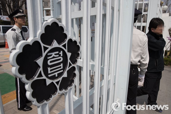 경찰은 청사 내 폐쇄회로(CC)TV를 확인해 용의자를 송씨로 지목하고 지난달 4일 제주도 자택에서 긴급체포했다.공무원 시험 수험생이 정부서울청사내 인사혁신처 사무실에 침입해 자신의 시험 성적을 조작하는 사건이 발생해 정부청사 방호와 정보보안에 또 다시 허점을 드러냈다. 사진은 6일 오전 서울 종로구 정부서울청사 출입문의 모습. 2016.04.06 조종원 기자