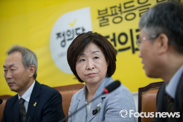 (서울=포커스뉴스) 심상정(가운데) 정의당 대표가 28일 오전 서울 여의도 국회에서 이석태(왼쪽) 세월호 특조위 위원장을 비롯한 특조위원들을 만나 대화하고 있다.