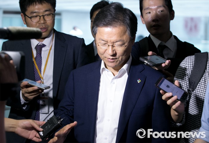 (서울=포커스뉴스) 28일 오전 서울 여의도 국회 의원회관에서 왕주현 전 사무부총장 구속 등 리베이트 수수 의혹 관련 비공개 국민의당 의원총회를 마친 천정배 공동대표가 취재진 질문을 받으며 이동하고 있다.