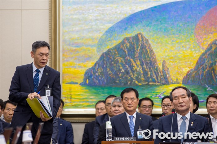(서울=포커스뉴스) 최완근(왼쪽) 국가보훈처 차장이 28일 오전 서울 여의도 국회에서 열린 정무위원회에 참석해 야당 위원들의 퇴장 요구를 받은 박승춘 국가보훈처장을 대신해 업무보고 하고 있다.