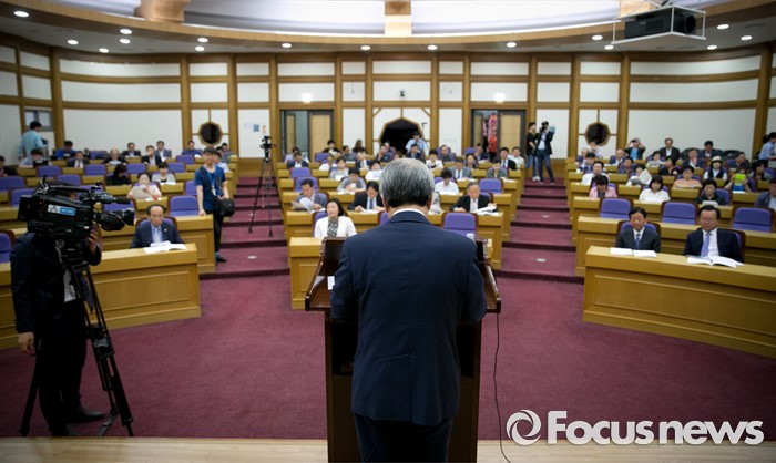 (서울=포커스뉴스) 28일 오전 서울 여의도 국회 의원회관에서 열린 '한국적 제3의 길' 창립 기념 초청 강연, '한국경제와 20대 국회가 가야할 길'에 참석한 정운찬 동반성장연구소 이사장이 강연을 하고 있다.
