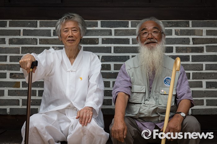 (서울=포커스뉴스) 28일 오전 서울 종로구 류가헌 갤러리에서 백기완(왼쪽)통일문제연구소 소장과 문정현 신부가 '시대의 2인전 두 어른' 기자간담회에 참석해 기념촬영을 하고 있다.