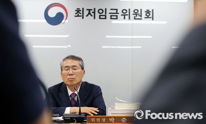 (세종=포커스뉴스) 박준성 최저임금위원회 위원장이 28일 오후 세종시 정부세종청사 고용노동부 최저임금위원회 전원히의실에서 열린 최저임금위원회 제7차 전원회의에서 잠시 생각에 잠겨 있다.