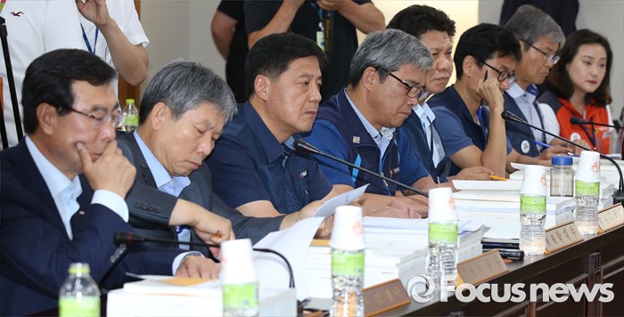 (세종=포커스뉴스) 28일 오후 세종시 정부세종청사 고용노동부 최저임금위원회 전원히의실에서 열린 최저임금위원회 제7차 전원회의에서 위원들이 박준성 최저임금위원회 위원장의 발언을 듣고 있다.