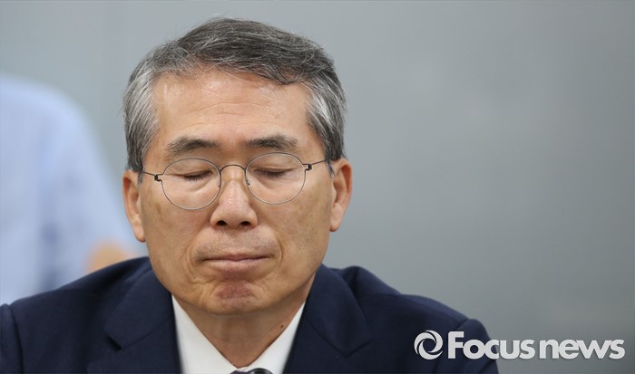(세종=포커스뉴스) 박준성 최저임금위원회 위원장이 28일 오후 세종시 정부세종청사 고용노동부 최저임금위원회 전원히의실에서 열린 최저임금위원회 제7차 전원회의에서 잠시 생각에 잠겨 있다.