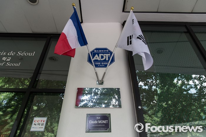 조은희 서초구청은 "프랑스 속담에 '와인과 친구는 오래될수록 좋다'는 말이 있다. 서초구는 프랑스의 좋은 이웃으로서 오랫동안 어울려 살 수 있도록 노력하겠다"고 언급하며 축하인사를 건넸다.(서울=포커스뉴스) 28일 오후 서울 서초구 서울프랑스학교에서 '파리식 길 표지판 공개 행사'가 끝나고 양국 국기가 걸려있다. 2016.06.28 이승배 기자 (서울=포커스뉴스) 28일 오후 서울 서초구 서울프랑스학교에서 파비앙 페논(오른쪽 두 번째) 주한 프랑스 대사와 조은희 서초구청장이 '파리식 길 표지판 공개 행사'에 참석해 표지판 제막을 하고 있다. 2016.06.28 이승배 기자 (서울=포커스뉴스) 28일 오후 서울 서초구 서울프랑스학교에서 파리식 도로명 현판을 설치했다. 그 중 하나인 프랑스 유명화가 클로드모네 현판이 서울프랑스학교 앞에 걸려있다.2016.06.28 최형욱 기자