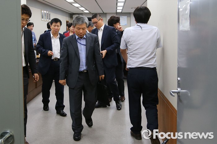 (세종=포커스뉴스) 29일 세종시 정부세종청사 고용노동부 최저임금위원회 전원회의실에서 위원들이 회의를 마치고 회의장을 나서고 있다. 최저임금 결정 법정 시한인 28일을 넘겼지만 최저임금 합의를 하지 못했다. 다음 8차 회의는 7월 4일에 열린다.