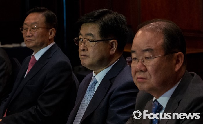 (서울=포커스뉴스) 29일 오전 서울 강남구 그랜드 인터콘티넨탈 호텔에서 열린 산업부 주최 조선업계 CEO ·전문가 간담회에 참석한 박대영(왼쪽부터) 삼성중공업 사장, 권오갑 현대중공업 사장, 정성립 대우조선해양 사장이 굳은 표정을 짓고 있다.