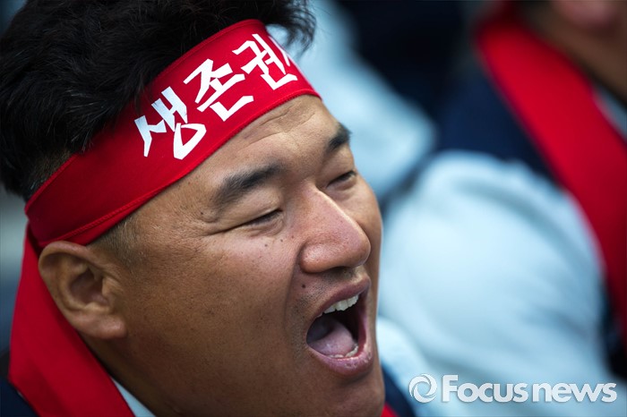(서울=포커스뉴스) 29일 오전 서울 서초구 삼성 사옥 앞에서 삼성중공업 노동협의회 관계자들이 구조조정에 반대하는 시위를 하고 있다. 삼성중공업은 지난 15일 임원들의 임금 반납, 희망퇴직 등이 포함된 구조조정안을 공개했으며 올해 약 1500명 규모의 희망퇴직을 단행할 계획이라 밝혔다.