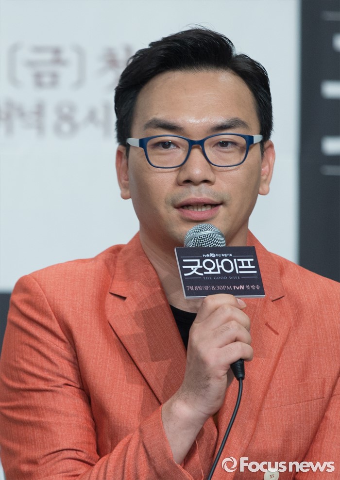 (서울=포커스뉴스) 29일 오후 서울 영등포구 타임스퀘어 아모리스홀에서 열린 tvN 10주년 특별기획 '굿와이프' 제작발표회에 참석한 배우 이정효 감독이 인사말을 하고 있다.