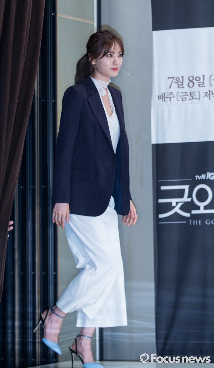 (서울=포커스뉴스) 29일 오후 서울 영등포구 타임스퀘어 아모리스홀에서 열린 tvN 10주년 특별기획 '굿와이프' 제작발표회에 참석한 배우 나나가 포토타임을 갖고 있다.