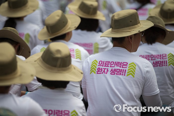 (서울=포커스뉴스) 29일 오후 서울 용산구 서울역 앞에서 보건의료노조의 총력투쟁 결의대회 집회가 열리고 있다.