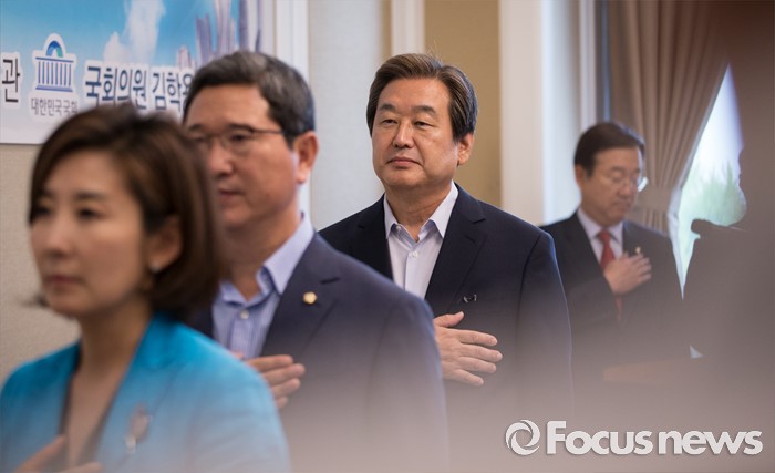 이어 "다시 한 번 불러보는 그들의 이름 하나하나에 무한한 존경과 감사의 뜻을 전한다"며 "더불어 오늘도 최전방에서 땀 흘려가며 국토를 지키는 우리 장병들에게 감사의 말씀을 드린다"고 했다.김무성(왼쪽 세번째) 새누리당 전 대표가 22일 오후 서울 여의도 국회에서 열린 비박계 새누리당 의원들이 주축이 된 '대한민국 미래혁신포럼' 창립 총회에서 국기에 대한 경례를 하고 있다. 2016.06.22 김흥구 기자
