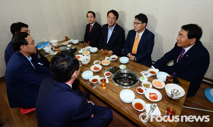정 원내대표는 이날 낮 여의도의 한 식당에서 복당파 7명의 의원 중 강길부, 주호영, 윤상현, 안상수, 이철규, 장제원 의원 등과 함께 식사를 했다. 이 자리에는 김광림 정책위의장과 김도읍 원내수석부대표, 박명재 사무총장도 참석했다. 유승민 의원은 개인 사정으로 불참했다.