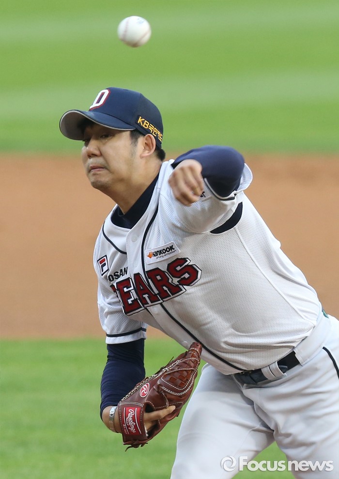 (서울=포커스뉴스) 29일 서울 잠실구장에서 열린 2016 프로야구 NC-두산 경기에서 1회초 두산 선발투수 장원준이 투구하고 있다.