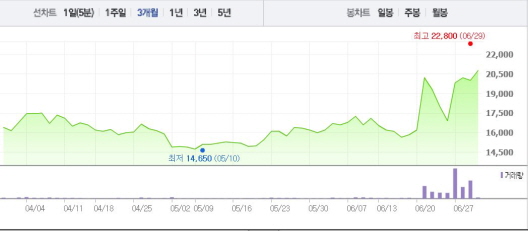 앞서 경보제약은 아산공장의 무균 우수의약품제조관리기준(GMP) 생산 설비가 미국 FDA 승인을 받았다고 27일 발표했다. 경보제약은 이를 통해 항생제 원료의약품인 세프트리악손의 미국 판매에 적극 나선다는 계획이다.주가흐름<사진출처=네이버 캡쳐>