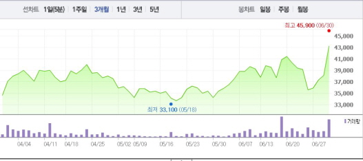 알테오젠은 30일 오전 9시37분 현재 전 거래일 대비 13.12%(5000원) 상승한 4만3100원에 거래되고 있다. 알테오젠은 27일부터 29일까지 1~4%의 상승폭을 기록했다.
