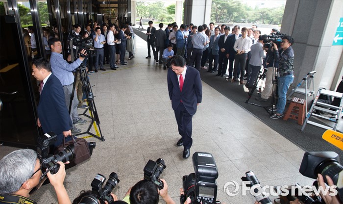 (서울=포커스뉴스) 농협중앙회장 부정선거의혹 관련 김병원 농협 회장이 조사 받기 위해 피의자 신분으로 30일 오전 서울 서초구 서울중앙지방검찰청으로 들어서며 취재진에게 인사하고 있다.