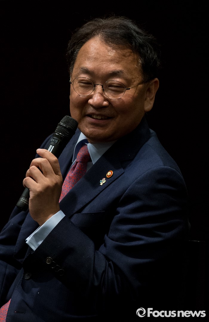 (서울=포커스뉴스) 유일호 경제부총리 겸 기획재정부 장관이 30일 오후 서울 용산구 그랜드하얏트 서울에서 열린 주한미국상공회의소 초청 오찬간담회에 참석해 사회자의 질문에 답하고 있다.