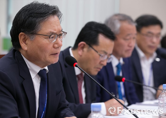 (서울=포커스뉴스) 30일 오후 서울 여의도 국회에서 열린 교육문화체육관광위원회 전체회의에 참석한 김호섭 동북아역사재단 이사장이 도종환 더불어민주당 의원의 질의에 답하고 있다.
