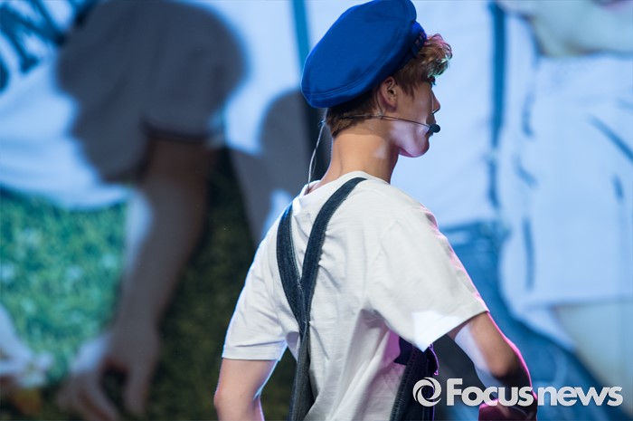 (서울=포커스뉴스) 30일 오후 서울 강남구 일지아트홀에서 열린 아이돌 그룹 아스트로의 두번째 미니앨범 'Summer Vibes' 발표 쇼케이스에 참여한 멤버 윤산하가 신곡무대를 선보이고 있다.
