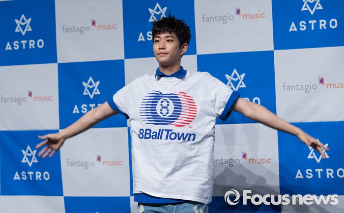 (서울=포커스뉴스) 30일 오후 서울 강남구 일지아트홀에서 열린 아이돌 그룹 아스트로의 두번째 미니앨범 'Summer Vibes' 발표 쇼케이스에 참여한 멤버 MJ가 포토타임을 갖고 있다.