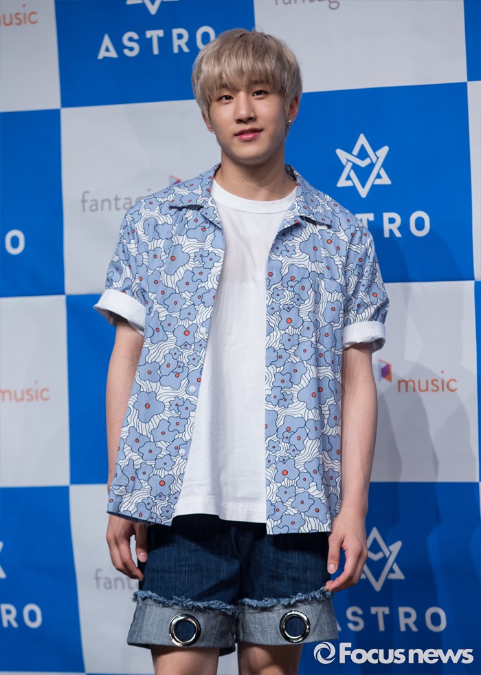 (서울=포커스뉴스) 30일 오후 서울 강남구 일지아트홀에서 열린 아이돌 그룹 아스트로의 두번째 미니앨범 'Summer Vibes' 발표 쇼케이스에 참여한 멤버 진진이 포토타임을 갖고 있다.